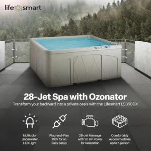 Feel the ultimate in relaxation with the LifeSmart LS350DX Hot Tub. This premium 5-person hot tub features 28 strategically placed jets, offering luxury, comfort, and innovation. It’s perfect for anyone enjoying complete relaxation and wellness in their backyard. Its features guarantee a thoroughly refreshing experience within an insulating, easy-to-maintain, and energy-efficient package. Now, you can relax or entertain like never before with the LifeSmart LS350DX 5-person 28 jet spa.