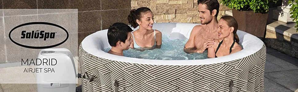 Spherical four-particular person stress-free spa with 120 soothing AirJet bubble massage system, speedy heating, and integrated water filtration